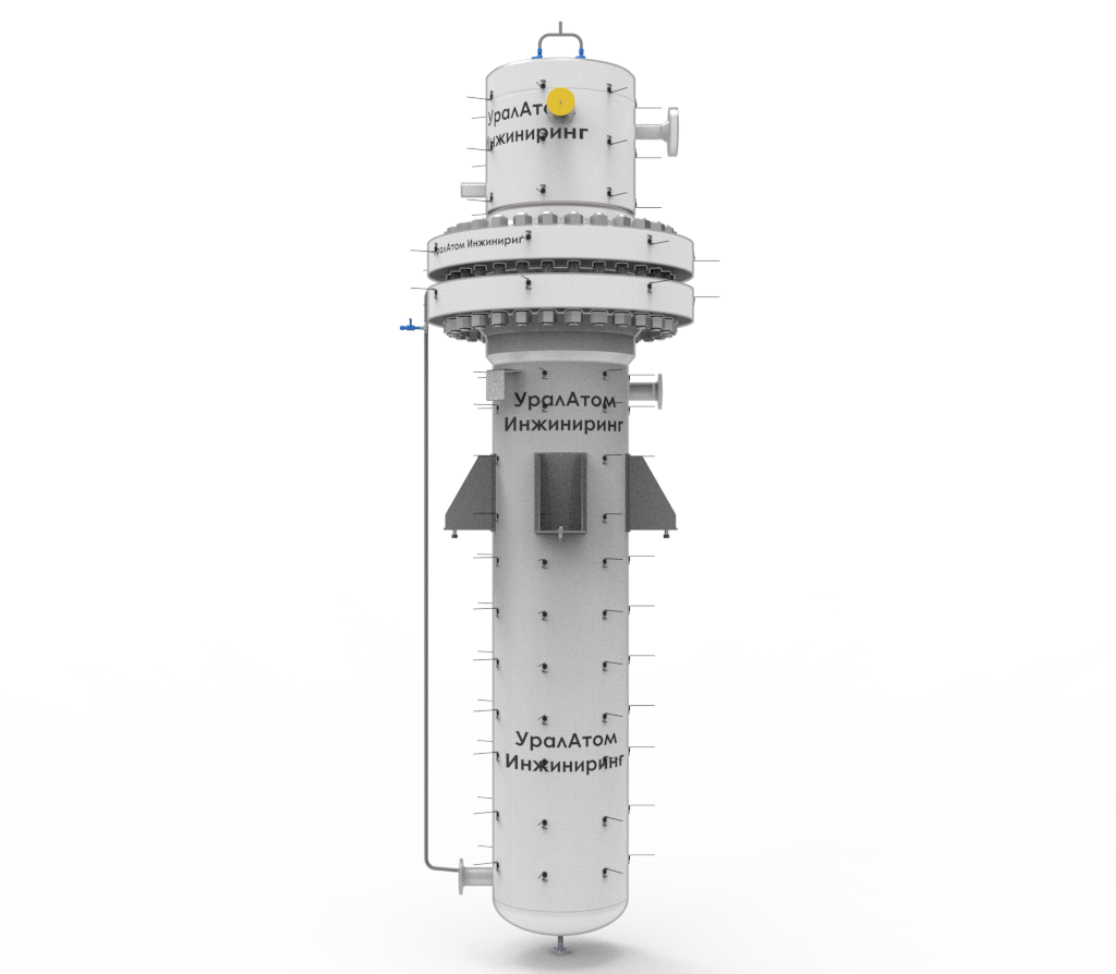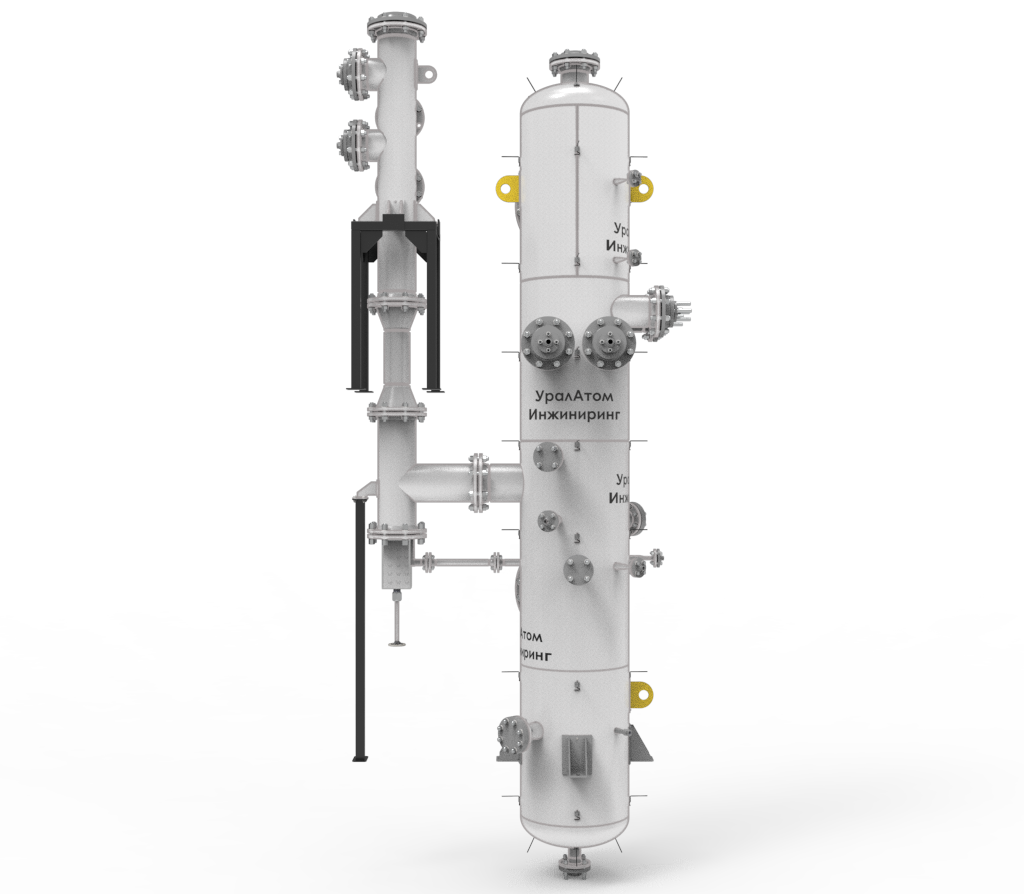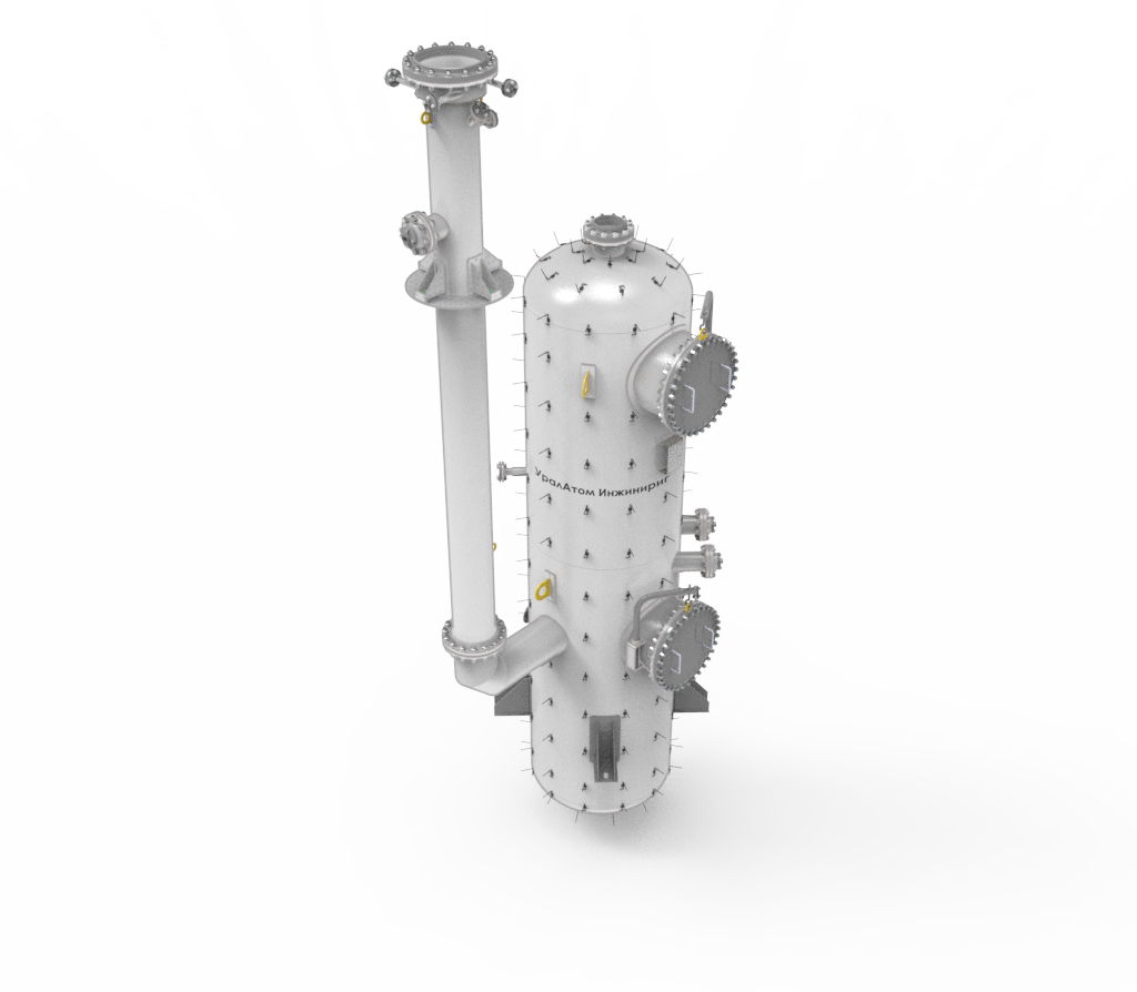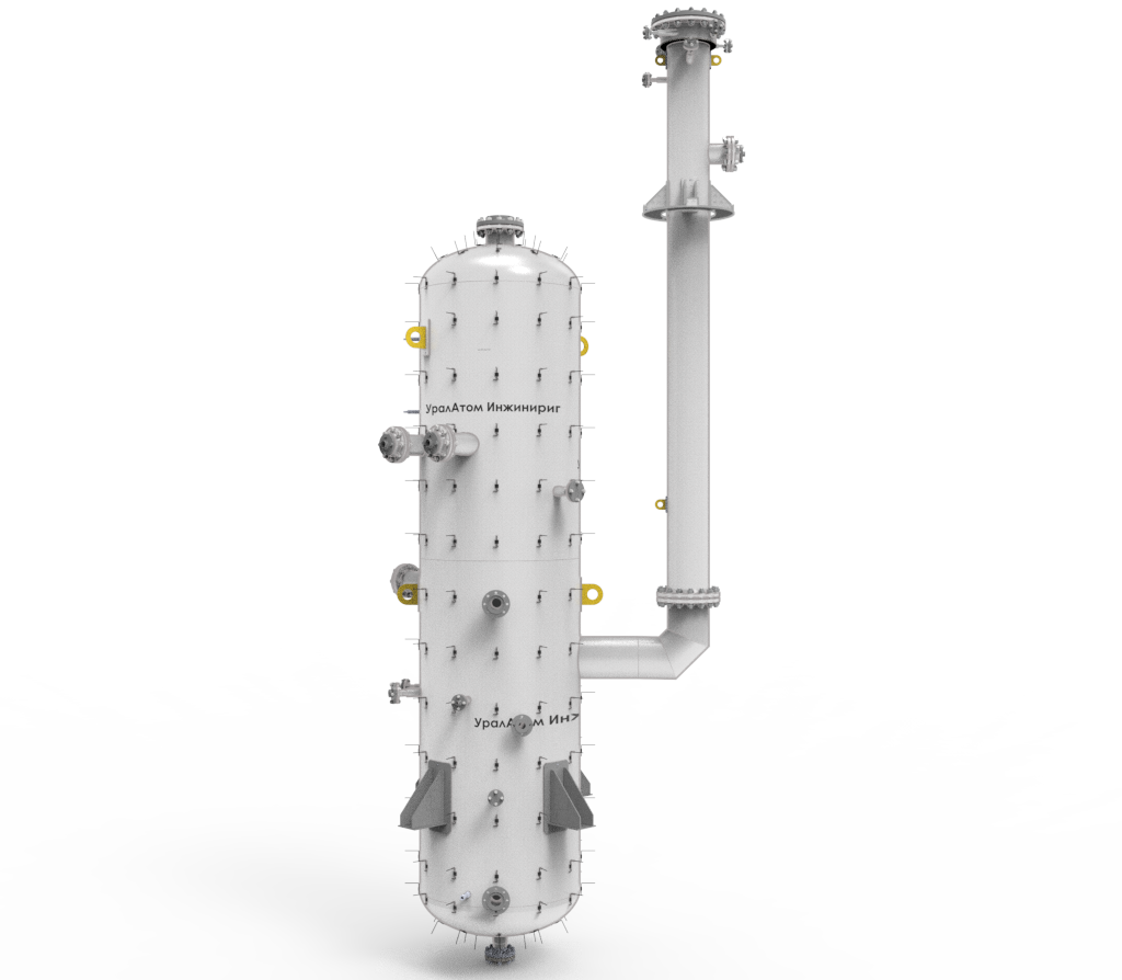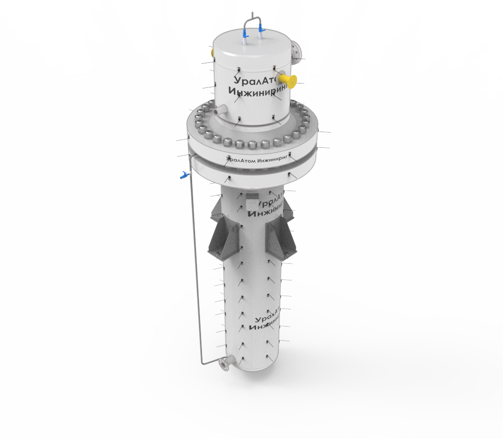 Скруббер эжекторный представляет собой вертикальный цилиндрический сосуд, состоящий из двух основных узлов: каплеуловителя с эллиптическими днищами с внутренним диаметром 1200 мм и толщиной стенки 10 мм и трубы-распылителя. Соединение узлов изделия между собой выполнено с помощью фланцевого разъема.