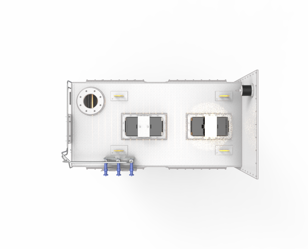 Смотровые окна предусмотрены для визуального контроля распылительных устройств в процессе проведения испытаний. После окончания испытаний стекла в смотровых окнах заменяются заглушками.