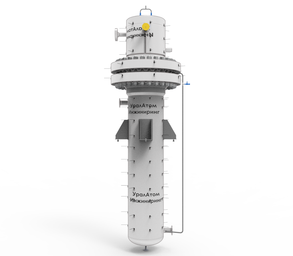 Скруббер Вентури представляет собой вертикальный цилиндрический сосуд, состоящий из двух основных узлов: трубы Вентури и каплеуловителя с эллиптическими днищами с внутренним диаметром 600 мм и толщиной стенки 8 мм. Соединение узлов изделия между собой выполнено с помощью фланцевого разъема.