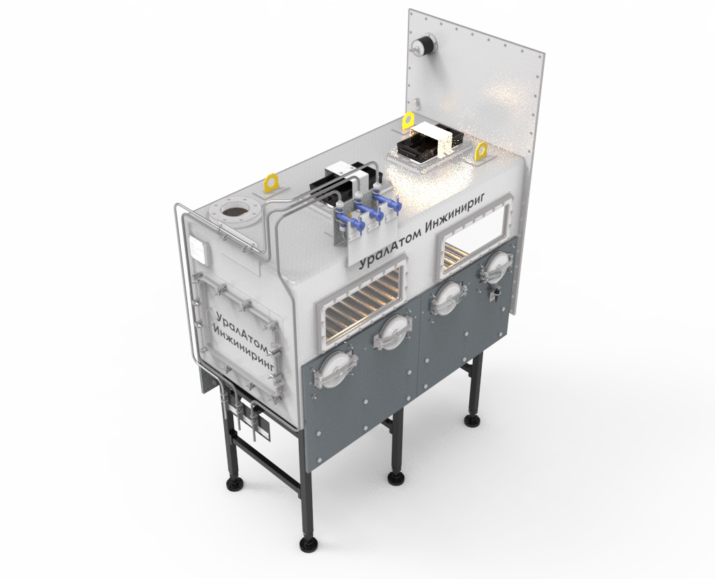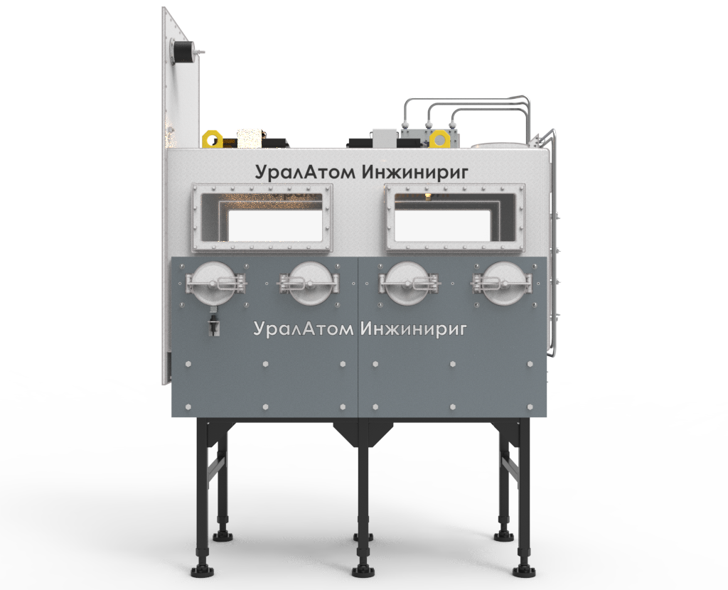 Корпус включает в себя смотровые окна, перчаточные проемы, дверь для загрузки отходов, устройство обмывочное, защитные листы.