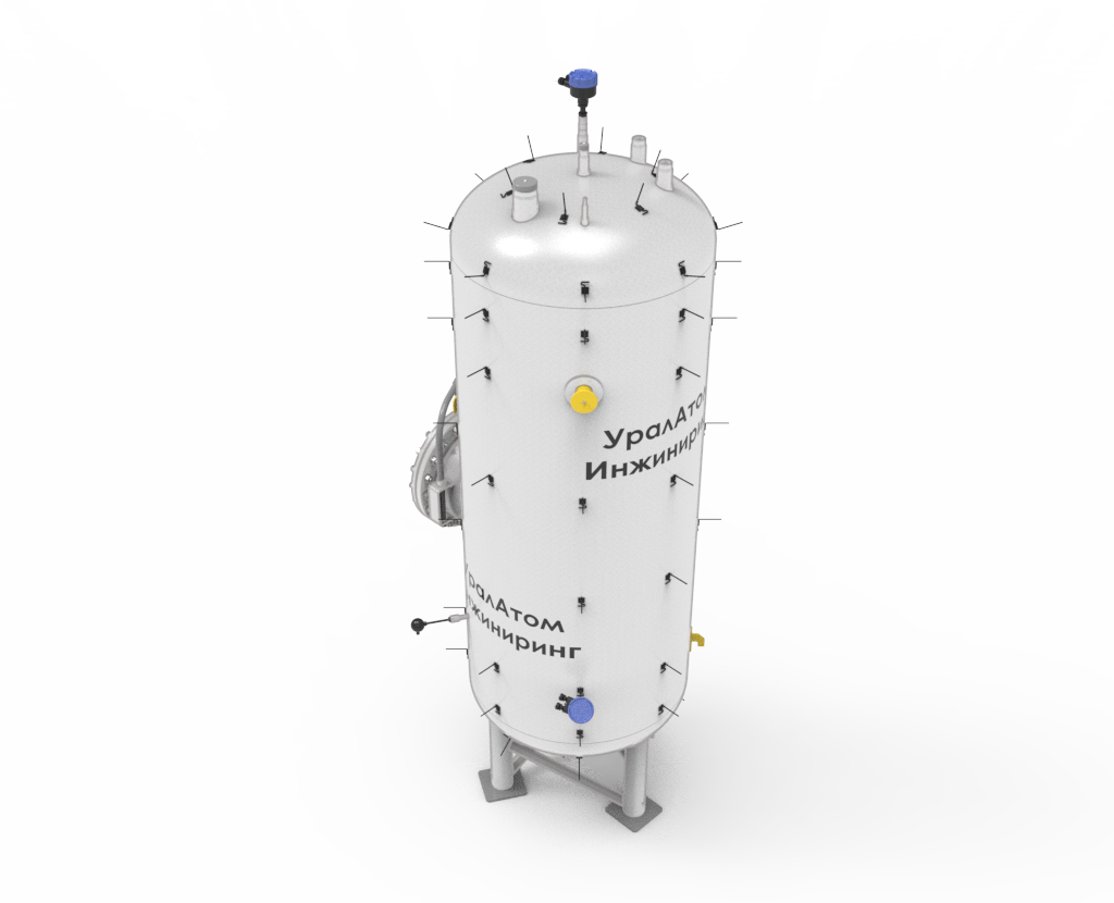 Емкость для конденсата представляет собой вертикальный цилиндрический сосуд с эллиптическими днищами с внутренним диаметром 1 000 мм.