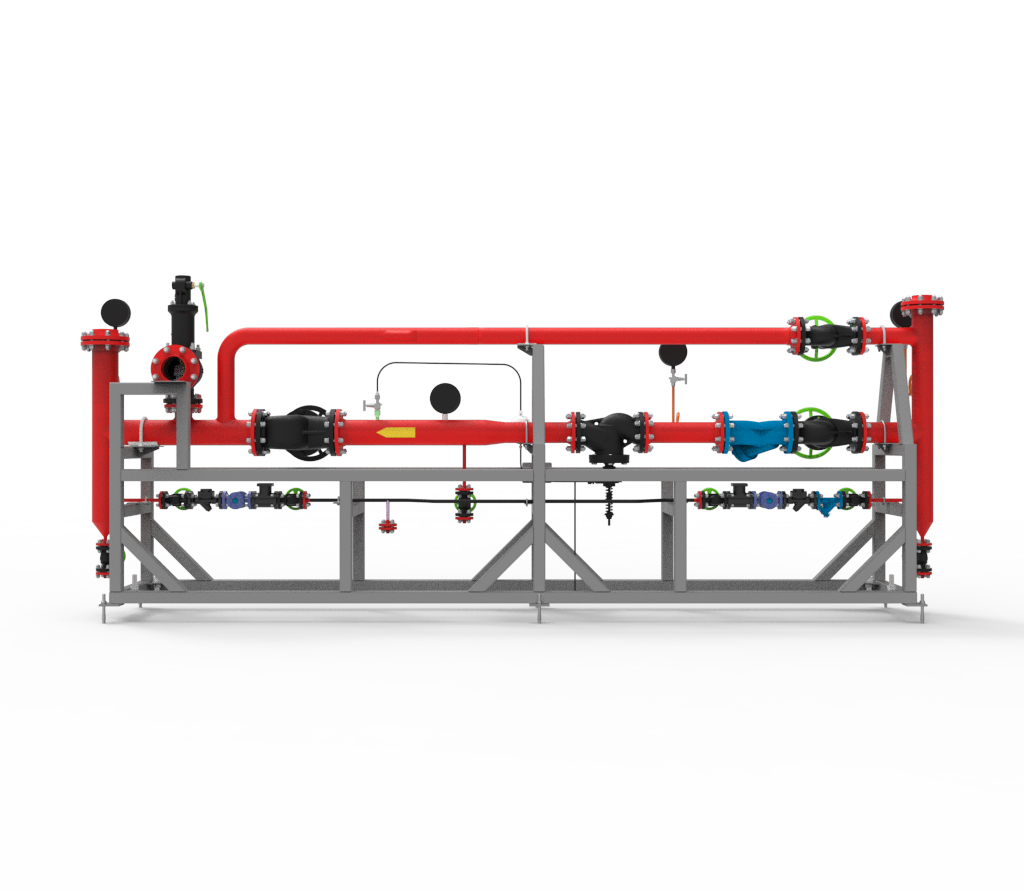 На трубопроводе также установлены штуцера для измерительных приборов, комплект арматуры: запорные вентили; регулятор давления «после себя»; клапан предохранительный; конденсатоотводчики; фильтры сетчатые; смотровые стекла; обратные клапаны.Технические характеристики: